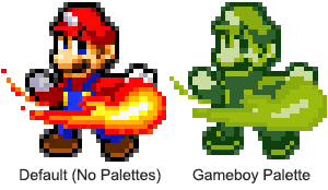 Palettes also can be applied to sprites. Sprite's original colors will not get affected, they will just be rendered using that pallette. |
